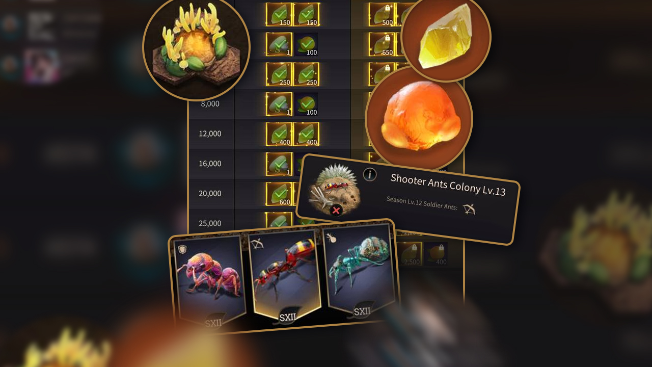 • SXII soldiers: mainly from soldier ant colonies (nodes), achievements, occupying buildings, and events